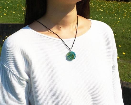 ペリドットとブルーアパタイト!薔薇の オルゴナイト ペンダントトップです!〜