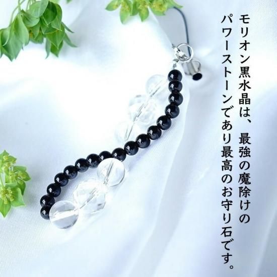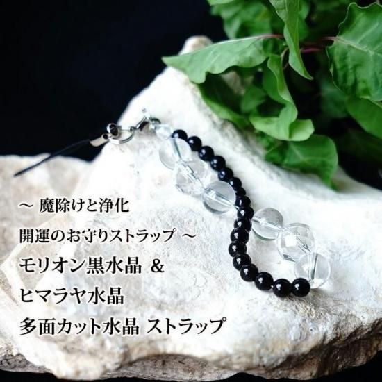 〜 最強の魔除けのパワーストーン モリオン黒水晶 と あなたの運勢をより良くする ヒマラヤ水晶 のストラップです 〜