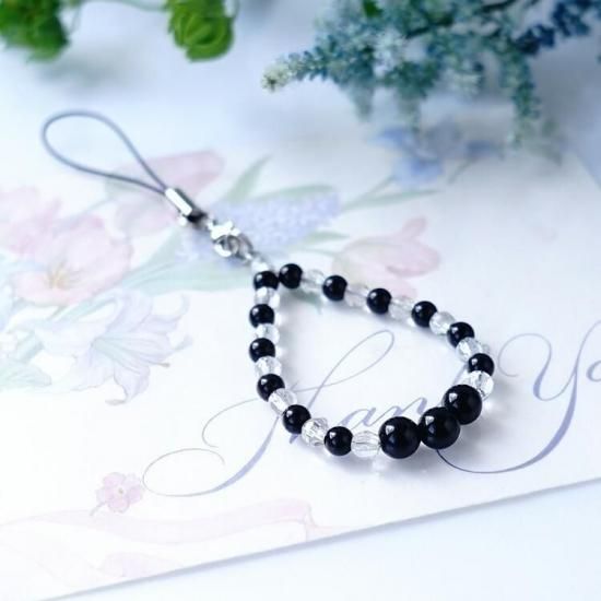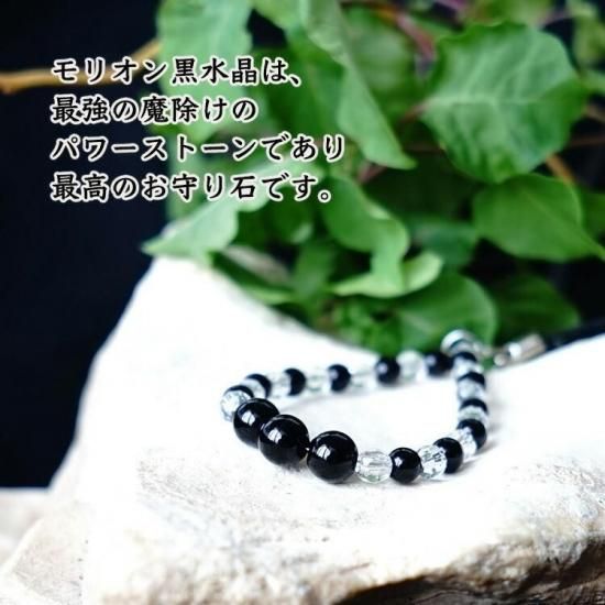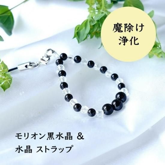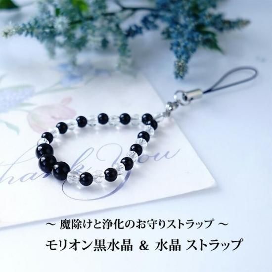 〜 最強の魔除けのパワーストーン モリオン黒水晶 と 水晶 のストラップです 〜