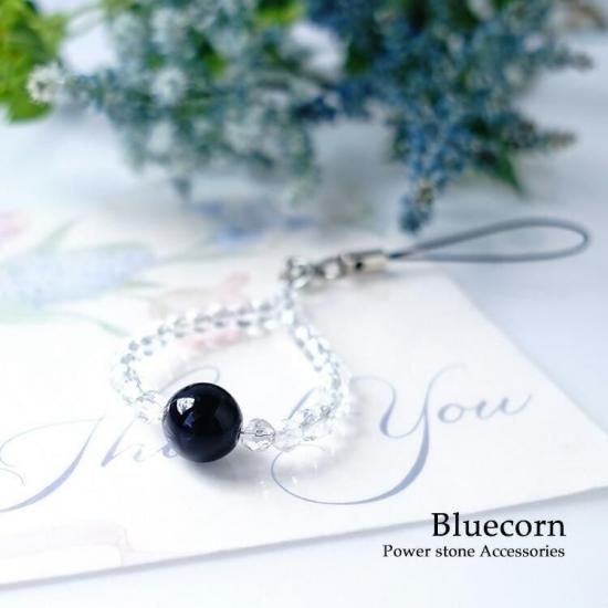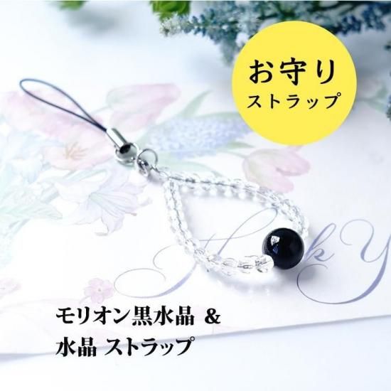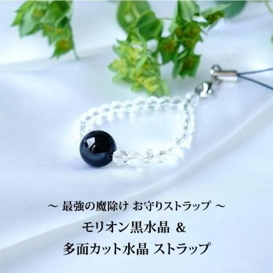 〜 最強の魔除けのパワーストーン モリオン黒水晶 と 多面カット水晶のストラップです 〜