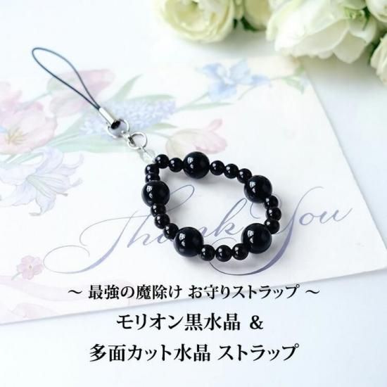 〜 最強の魔除けのパワーストーン モリオン黒水晶 と 多面カット水晶のストラップです 〜