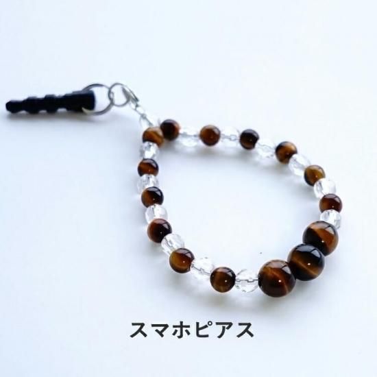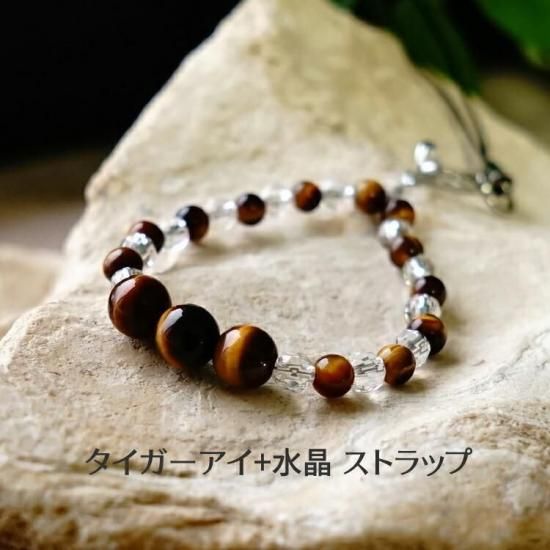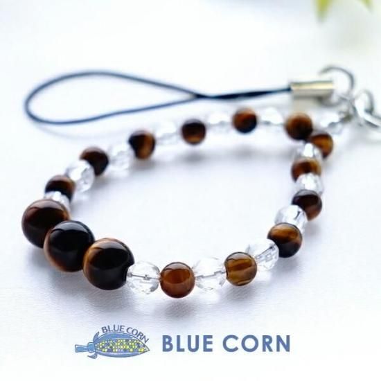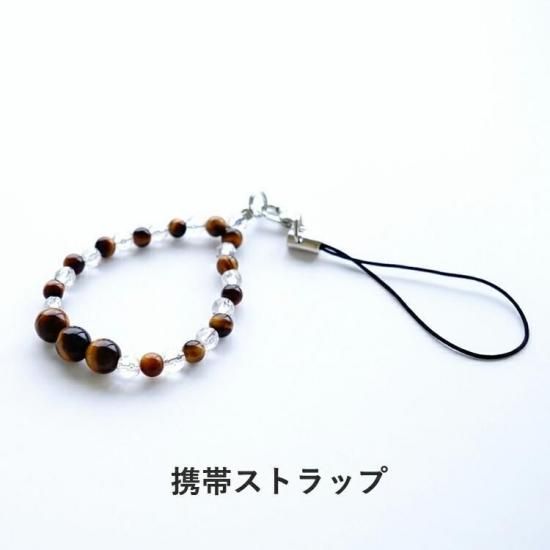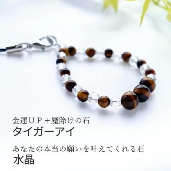 〜金運UP 魔除け 邪気払いのパワーストーン タイガーアイとあなたの本当の願いを叶える 水晶の携帯ストラップです。〜