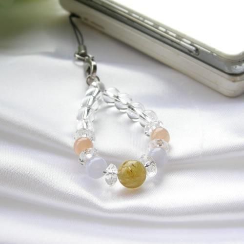 〜 ゴールデンルチルクォーツとブルーレース&オレンジムーンストーンの携帯ストラップです! 〜