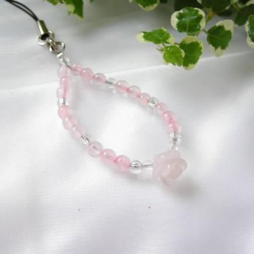 〜薔薇のローズクォーツの携帯ストラップです。〜