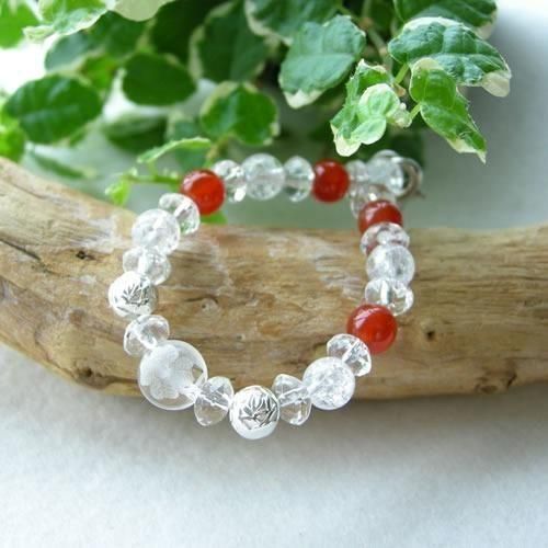 〜幸運の四つ葉のクローバーの手彫り水晶入り♪幸せのカーネリアンの携帯ストラップです〜