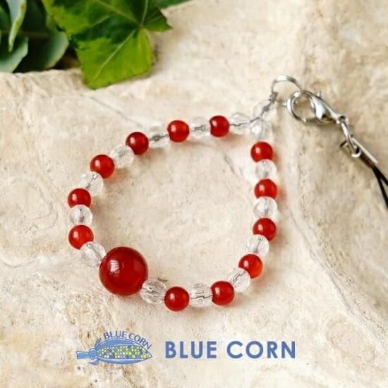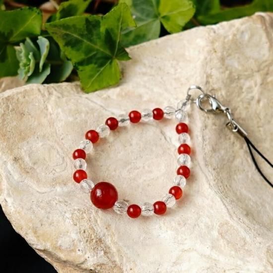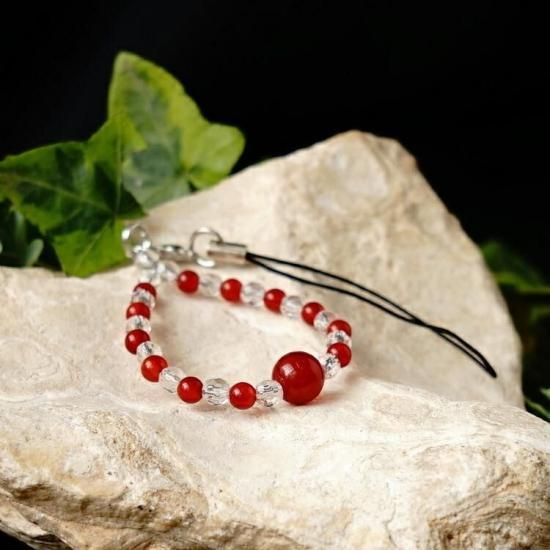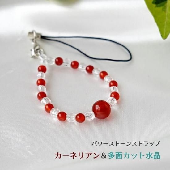 〜明るい未来へと導く カーネリアンとあなたの本当の願いを叶える 多面カット水晶の携帯ストラップです〜