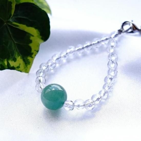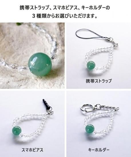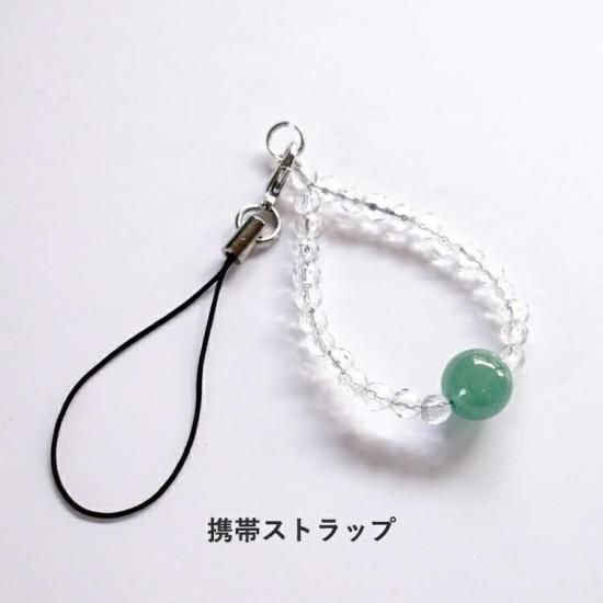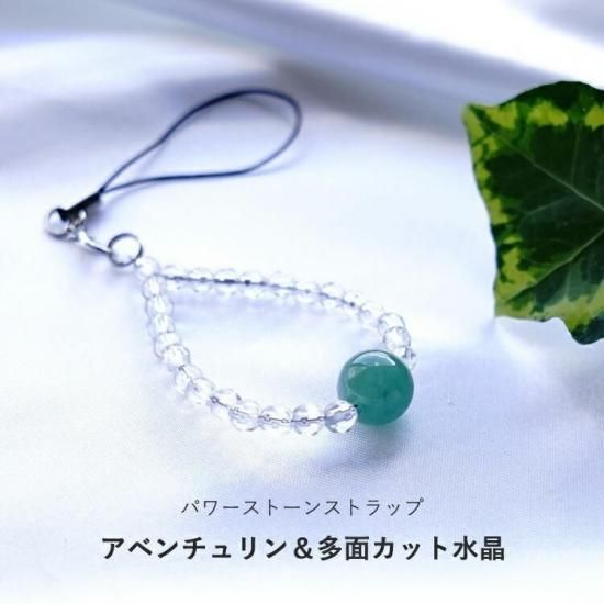〜大きなツキと運を運んでくる アベンチュリンと多面カット水晶のお守り携帯ストラップです〜