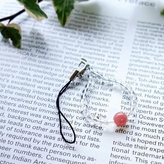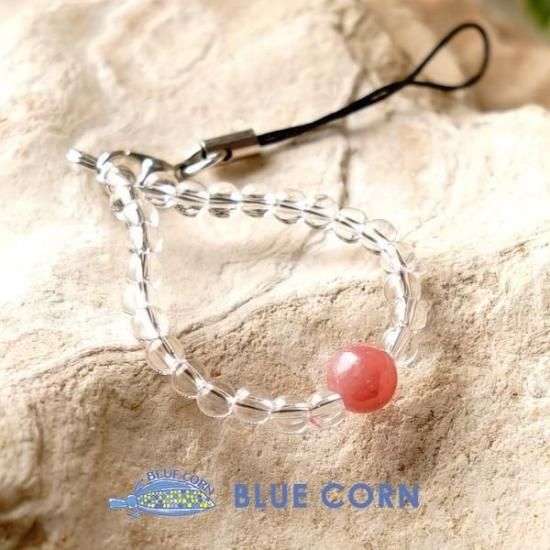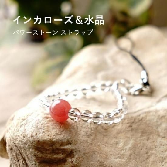 〜幸運のラッキーストーンインカローズと水晶の携帯ストラップです〜