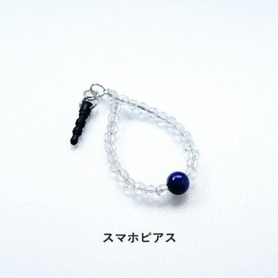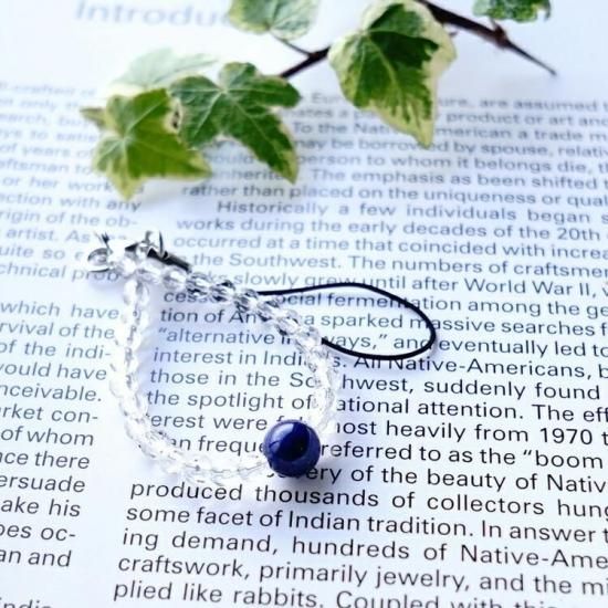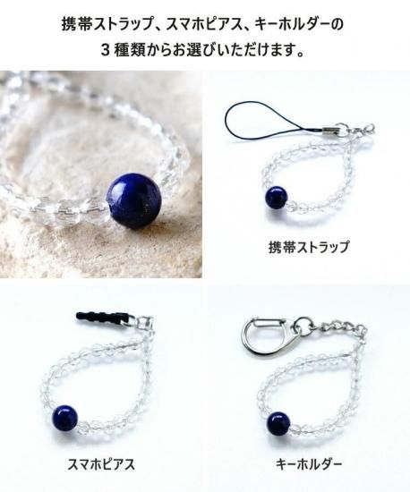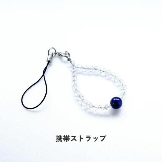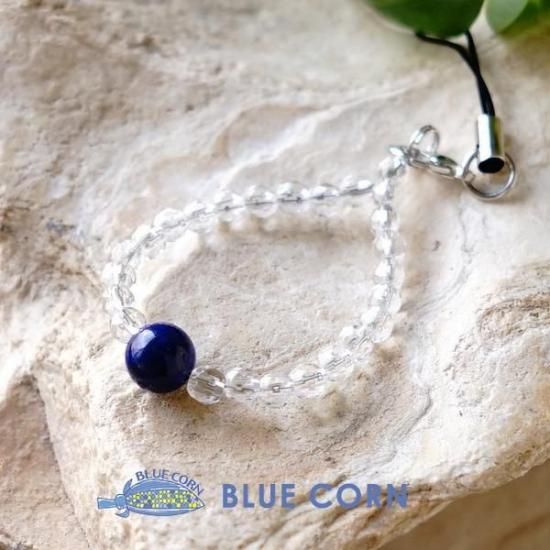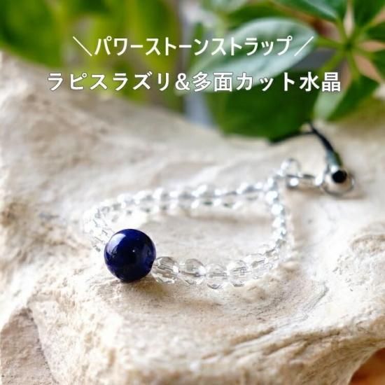 〜幸運を招くラピスラズリと多面カット水晶のストラップです〜