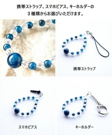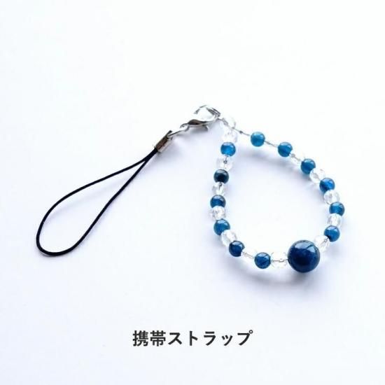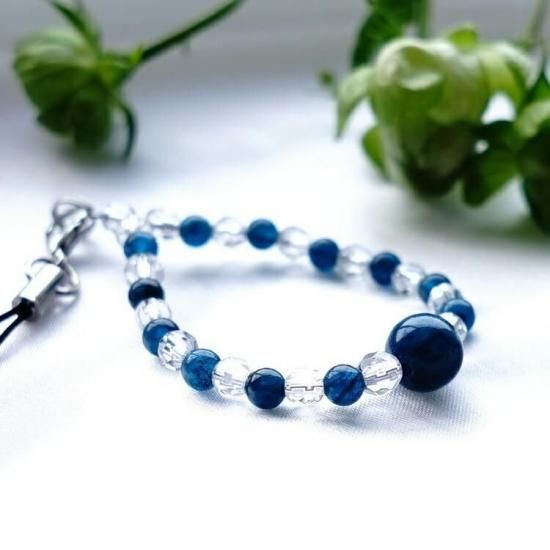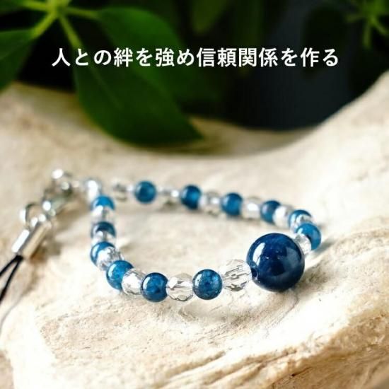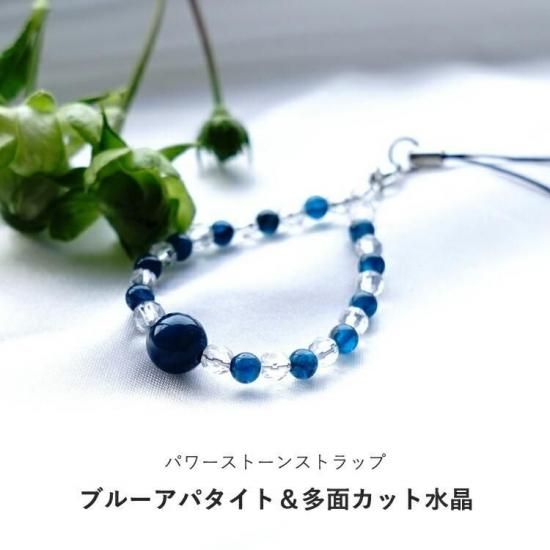 〜人との絆を強め 信頼関係を作る ブルーアパタイトと多面カット水晶のお守り携帯ストラップです〜