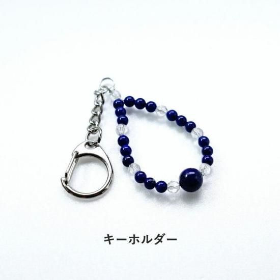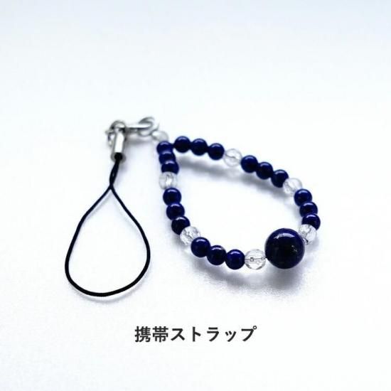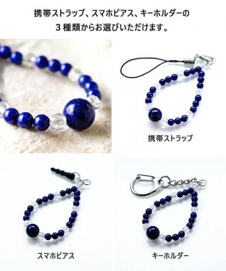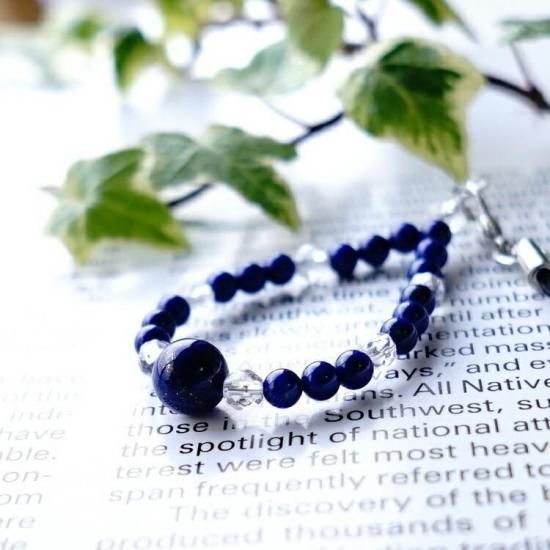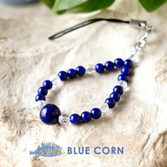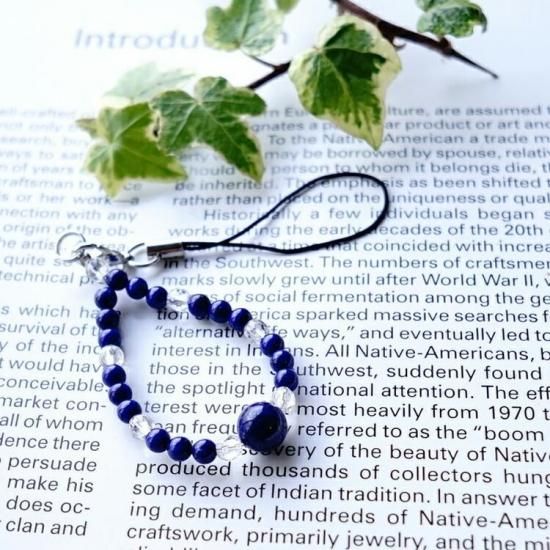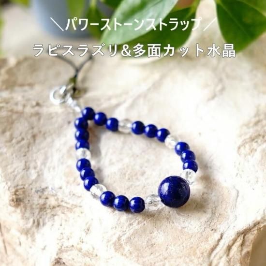 〜幸運を招くラピスラズリと多面カット水晶のストラップです〜
