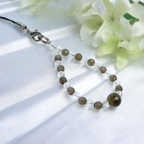 スモーキークォーツ & 水晶 携帯ストラップ 天然石ストラップ キーホルダー