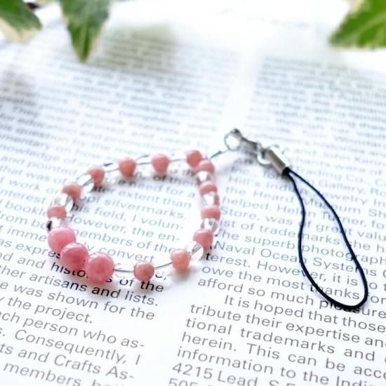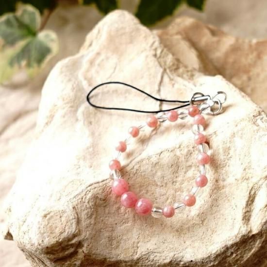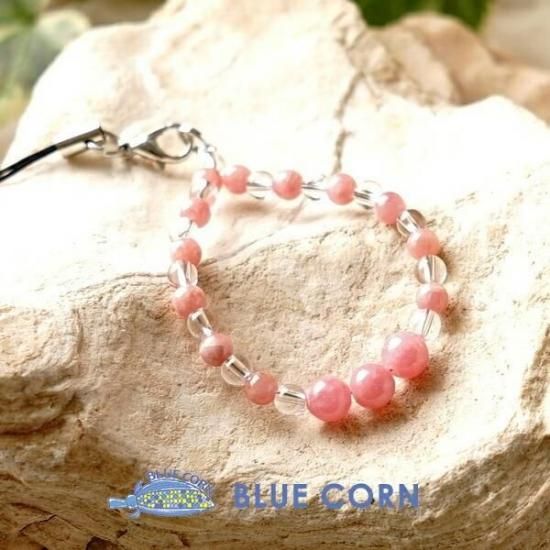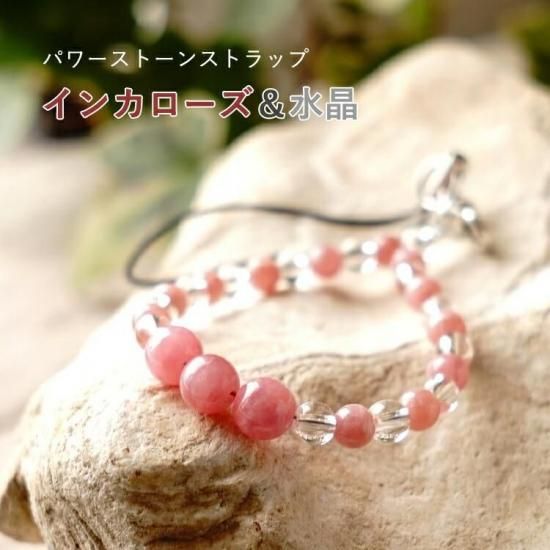 〜幸運のラッキーストーンインカローズと水晶の携帯ストラップです〜