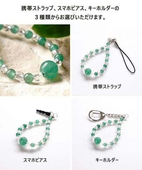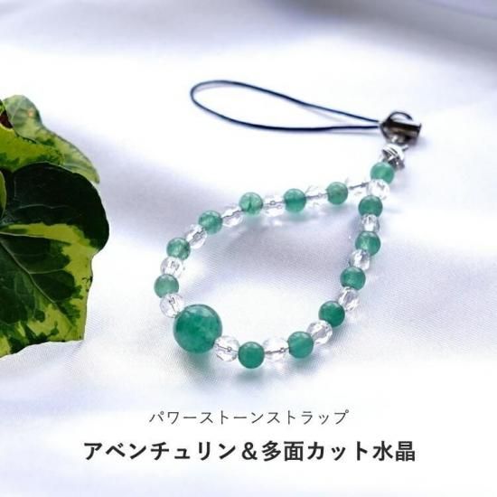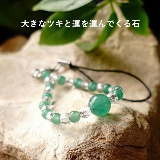 〜大きなツキと運を運んでくる アベンチュリンと多面カット水晶のお守り携帯ストラップです〜