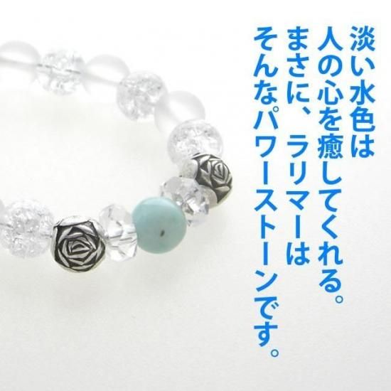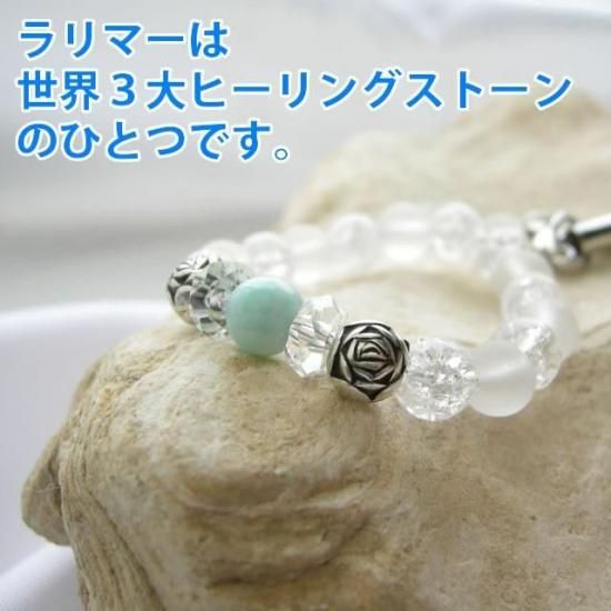 海のような淡いブルーが持つ人の心を癒してくれるラリマーストーンは、愛と平和の石といわれ、持つ人の怒りの感情を鎮め、優しさと親切心で心を満たしてくれる石とも言われています。