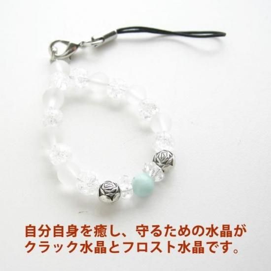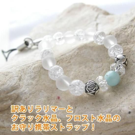 〜訳あり ラリマー フロスト水晶 & クラッシュ水晶 携帯ストラップです〜