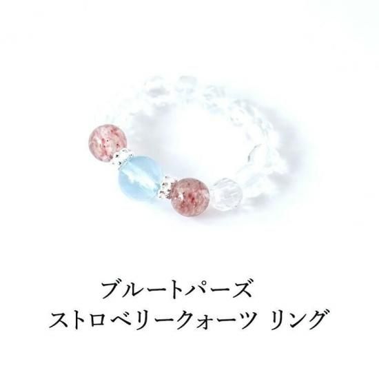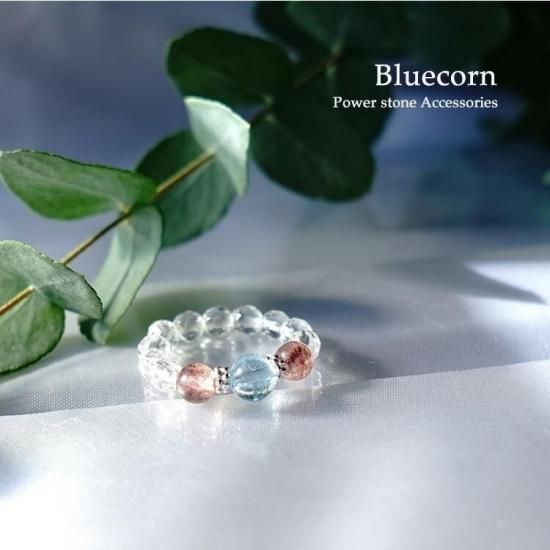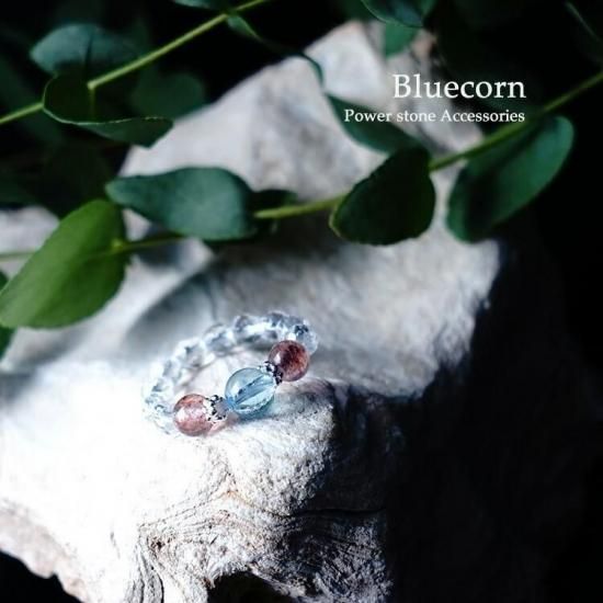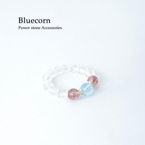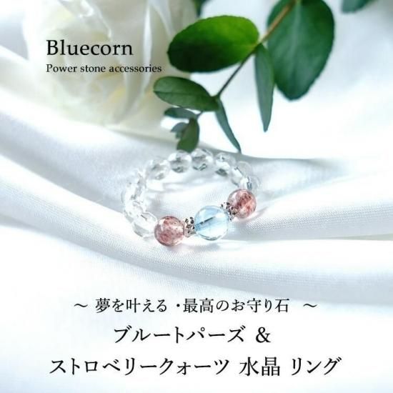 〜 夢を叶える ブルートパーズ と 最高のお守り石 ストロベリークォーツ 水晶 のリングです 〜