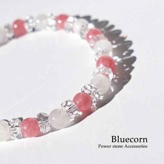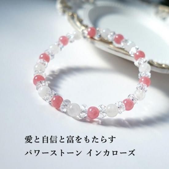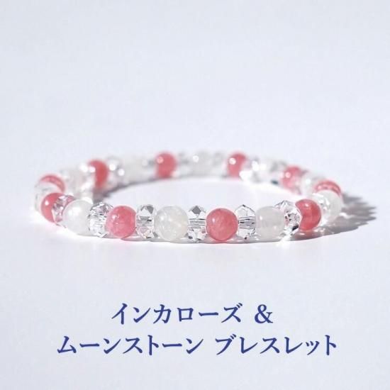 〜 幸運のラッキーストーン インカローズ と 縁結び・恋愛・夫婦円満 のパワーストーン ムーンストーンの ブレスレットです 〜