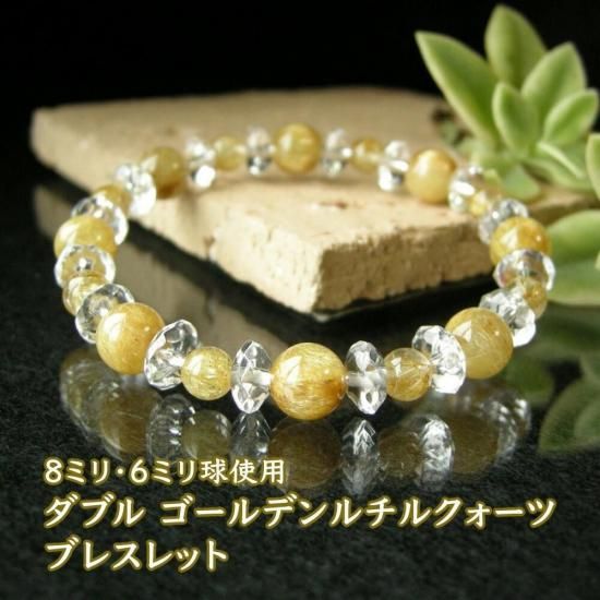 〜 金運・仕事運UPのお守り石 8ミリ球と6ミリ球を使用した ダブル ゴールデンルチルクォーツ の ブレスレットです 〜