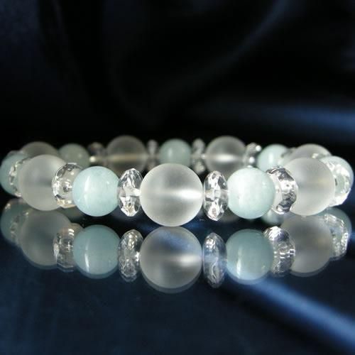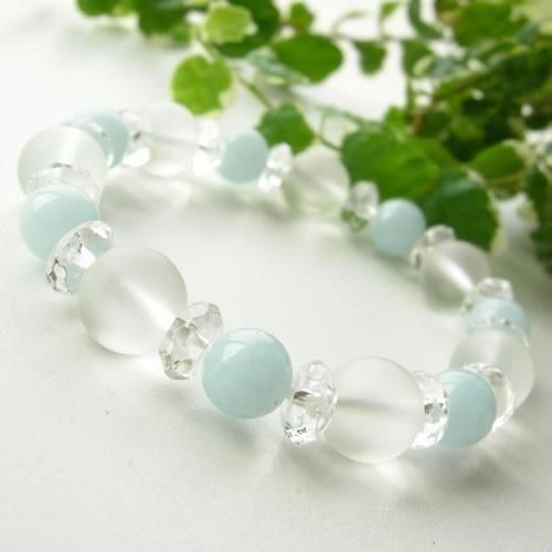 ミルキーアクアマリンとフロスト水晶のブレスレットを、