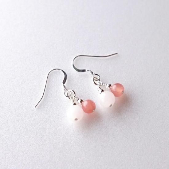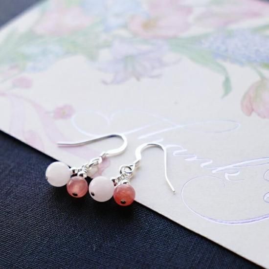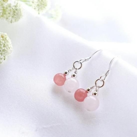 〜シルバー925使用!幸運のラッキーストーン インカローズと恋愛運UPのローズクォーツのピアスです〜