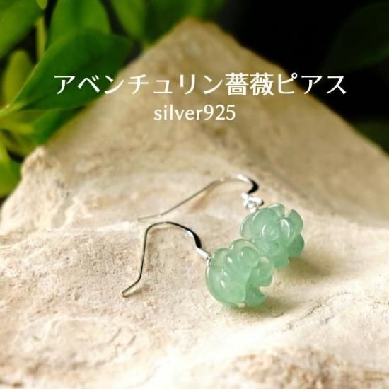 〜薔薇がデザインされた 大きなツキと運を運ぶ アベンチュリンのピアスです〜