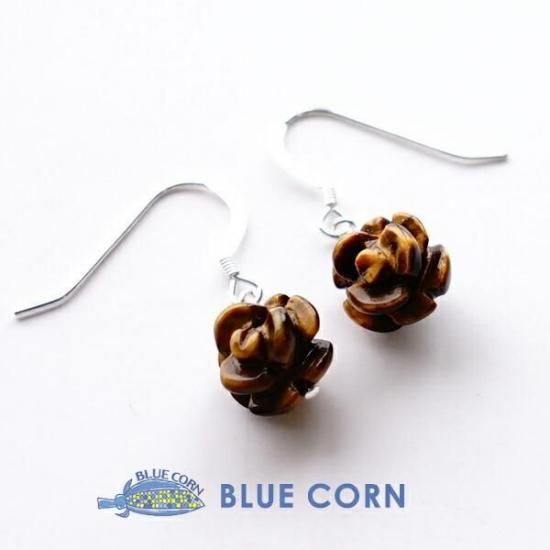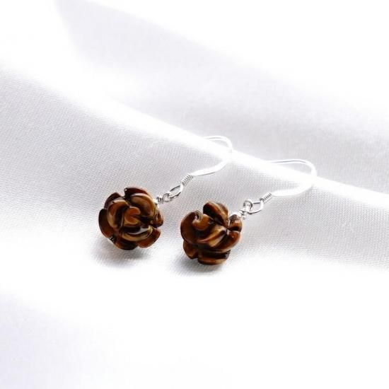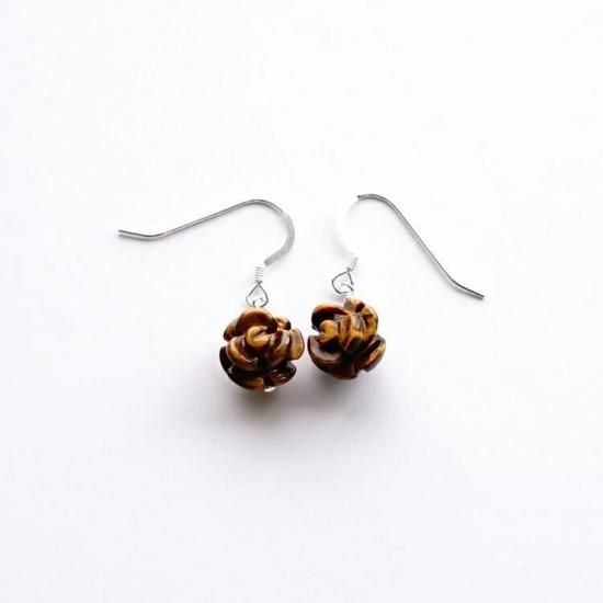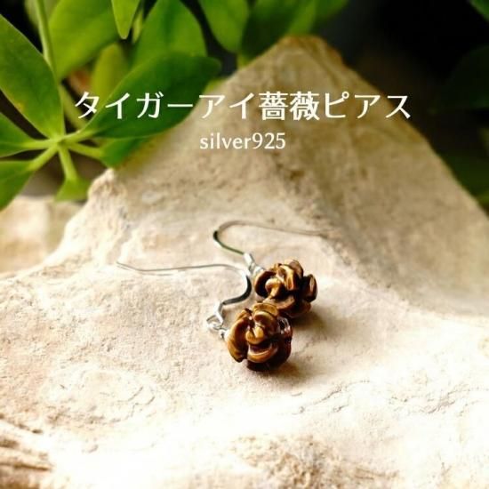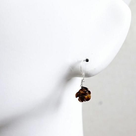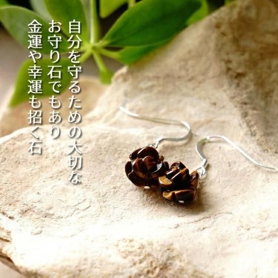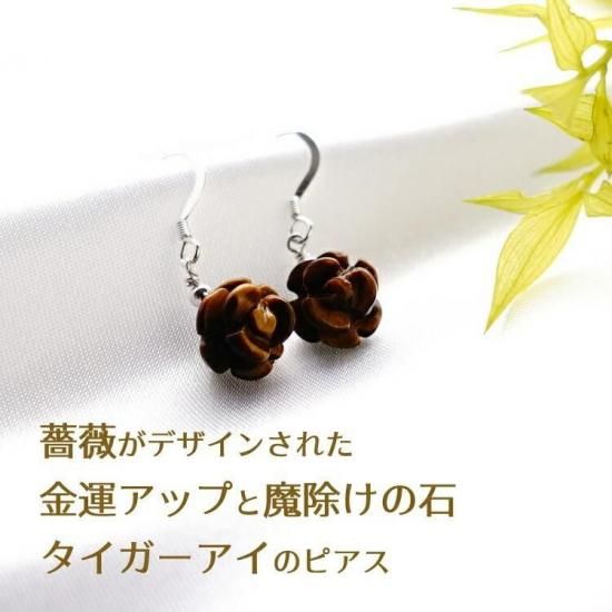 〜薔薇がデザインされた 金運アップと魔除けのパワーストーン タイガーアイのピアスです〜