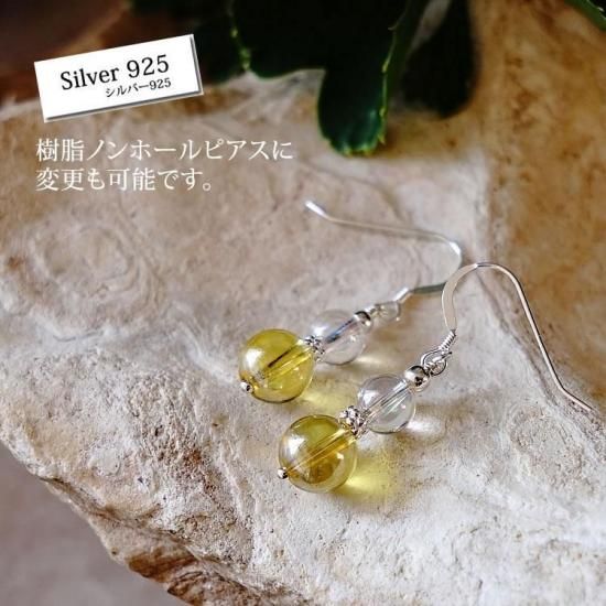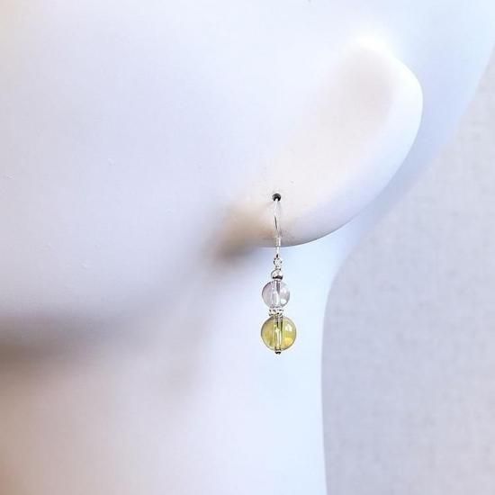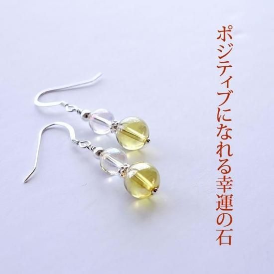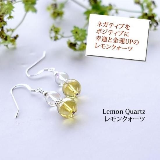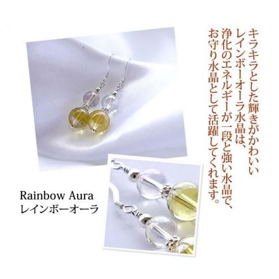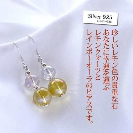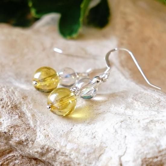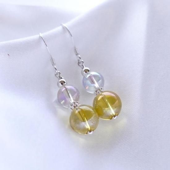 〜キラキラとしたかわいい輝きを放つ レインボーオーラ水晶と幸運を運ぶ レモンクォーツのピアスです〜