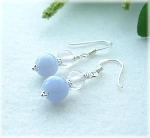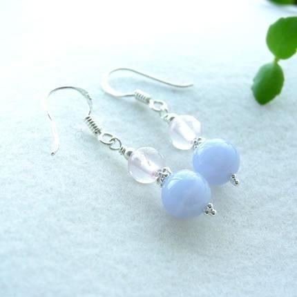 〜ブルーレースとマダガスカル産 ローズクォーツのピアスです〜