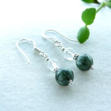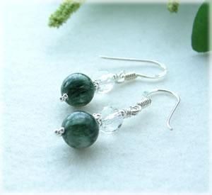 〜セラフィナイトと多面カット水晶のピアスです〜
