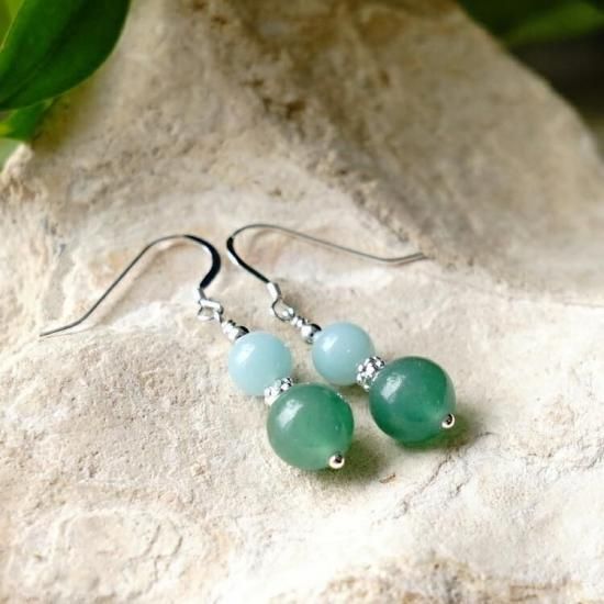 〜大きなツキと運を運ぶ アベンチュリンと未来の自分に自信が持てる アマゾナイトのピアスです〜