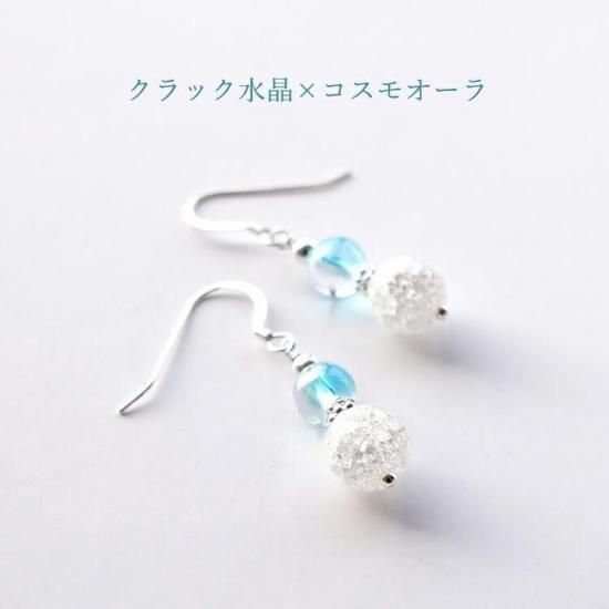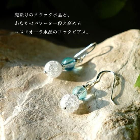 〜魔除けの水晶 クラック水晶とあなたのパワーを一段と高めるコスモオーラ水晶のピアスです〜