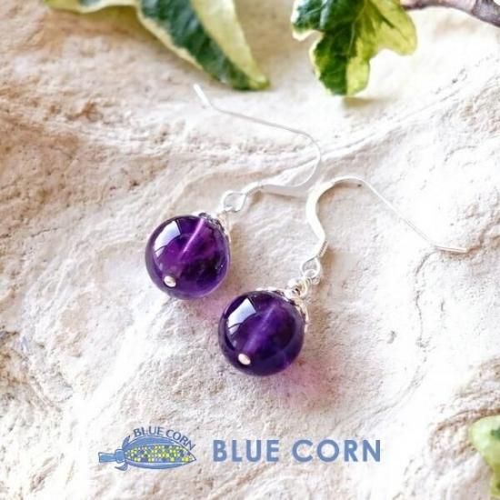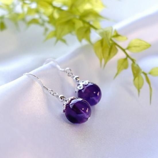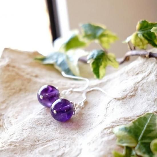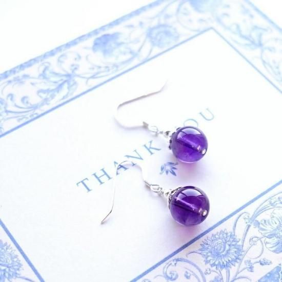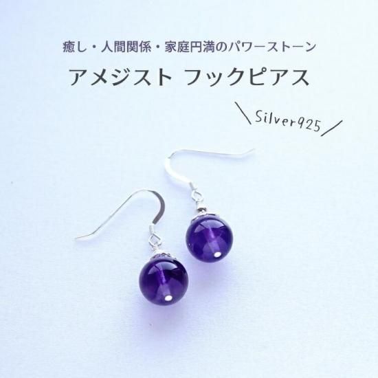 〜シルバー925使用!10ミリ球 アメジストのフックピアスです〜