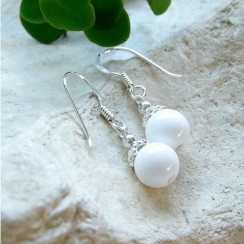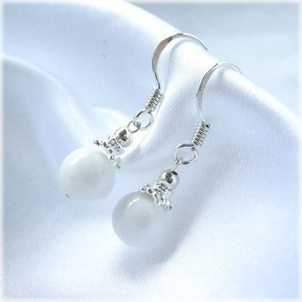 〜シルバー925使用!ホワイトアゲートのシンプルピアスです〜