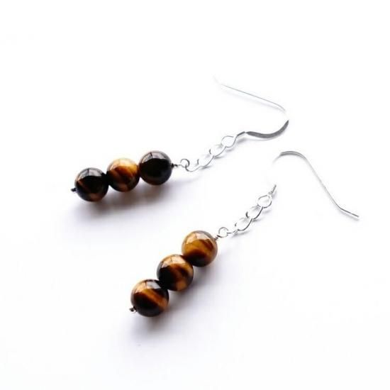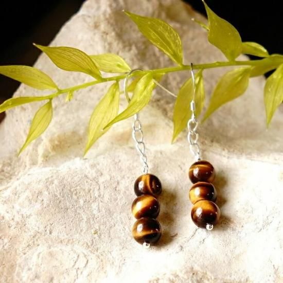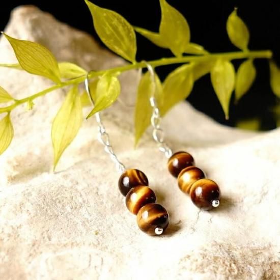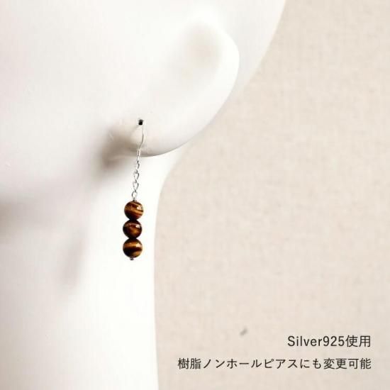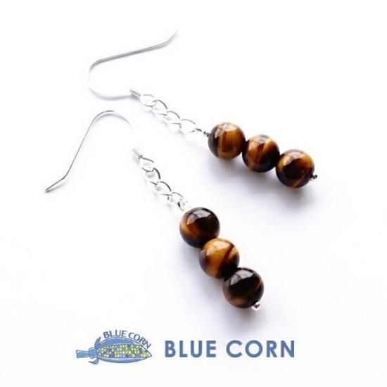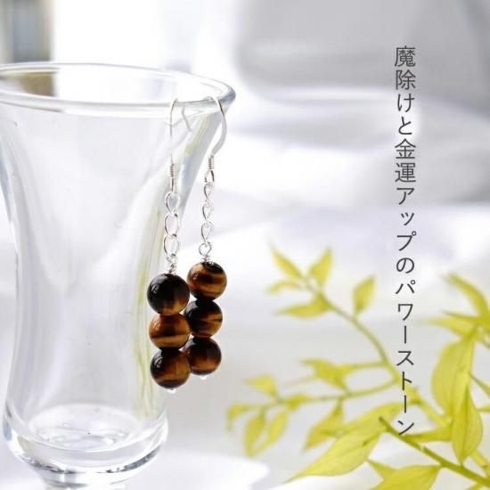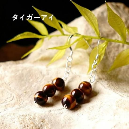 〜魔除け 金運アップのパワーストーン タイガーアイのトリプルピアスです〜