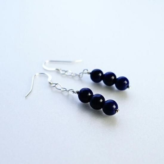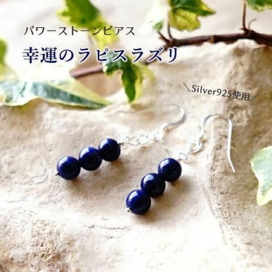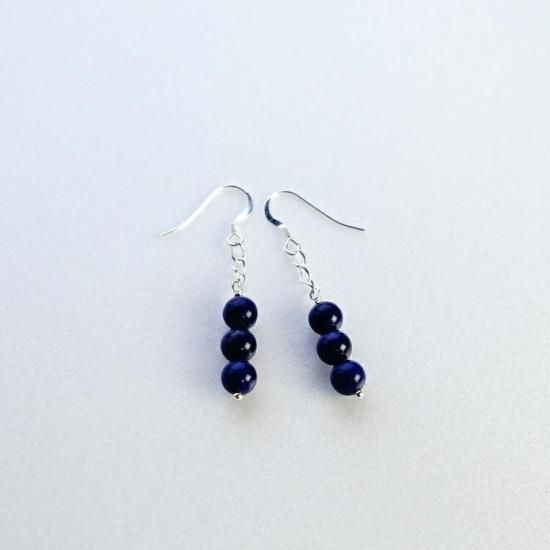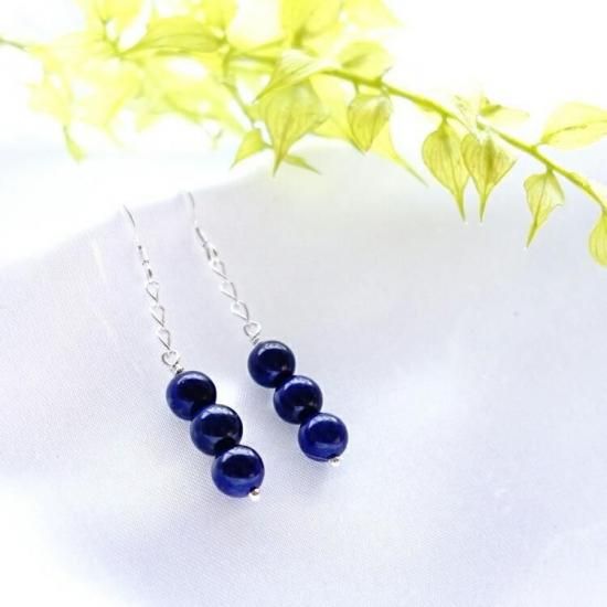 〜シルバー925使用!幸運を招く ラピスラズリのトリプルピアスです〜