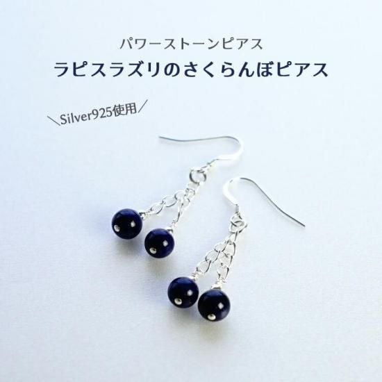 〜シルバー925使用!幸運を招く ラピスラズリのさくらんぼのピアスです〜