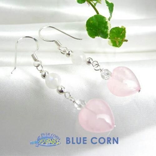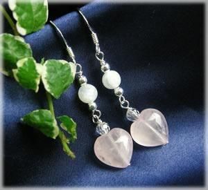 〜ハートのローズクォーツ、ムーンストーンのピアスです〜