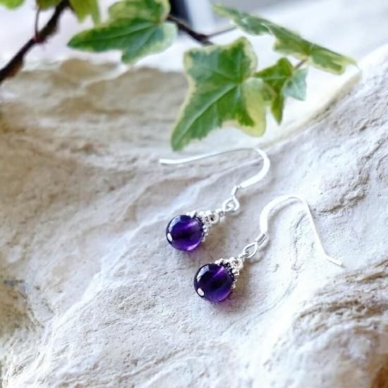 〜シルバー925使用!癒しのパワーストン 6ミリ球のアメジスト ピアスです〜