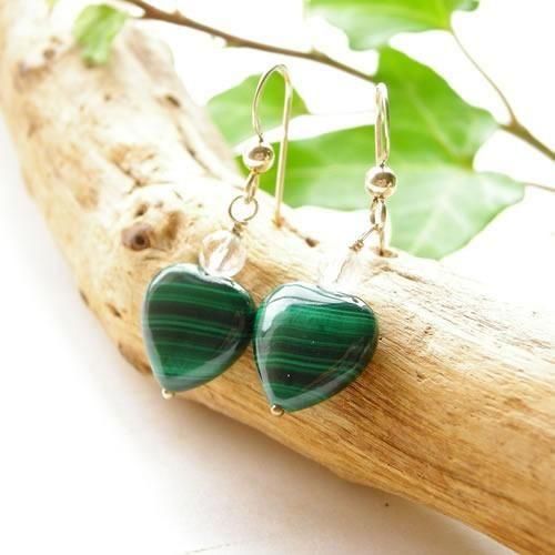 魔除けのマラカイト ハート のピアスです! 〜