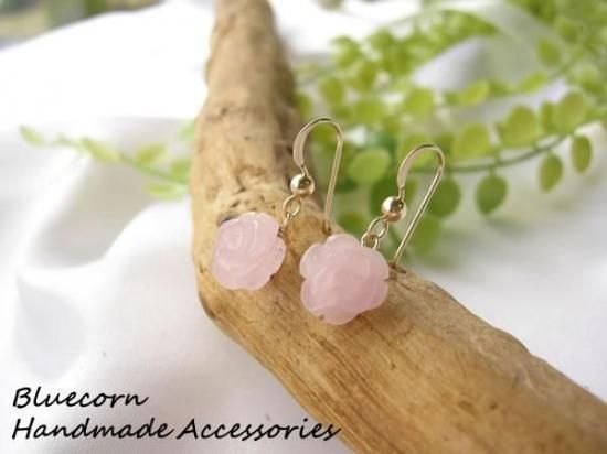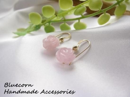 〜 14金ゴールドフィールド使用!薔薇のローズクォーツピアス! 〜
