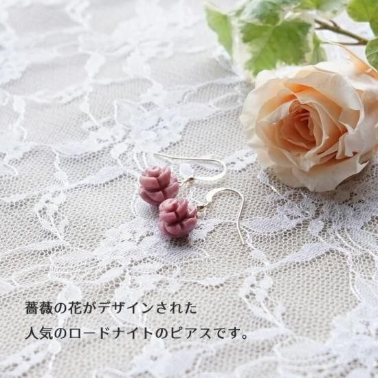 〜薔薇の花がデザインされた 人気のロードナイトのピアスです〜
