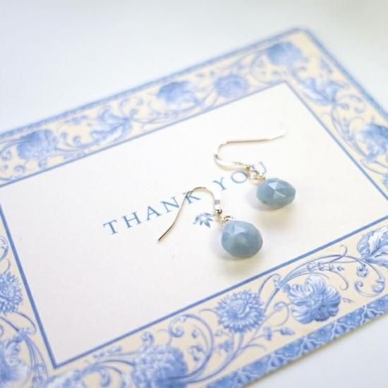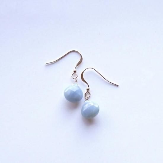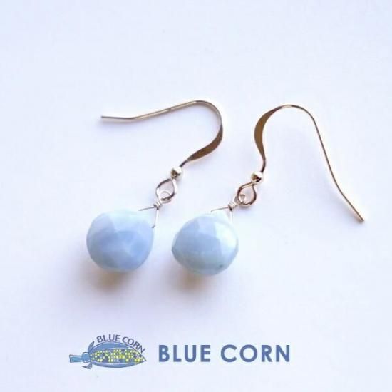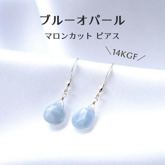 〜キラキラとしたマロンカットのブルーオパールピアスです〜
