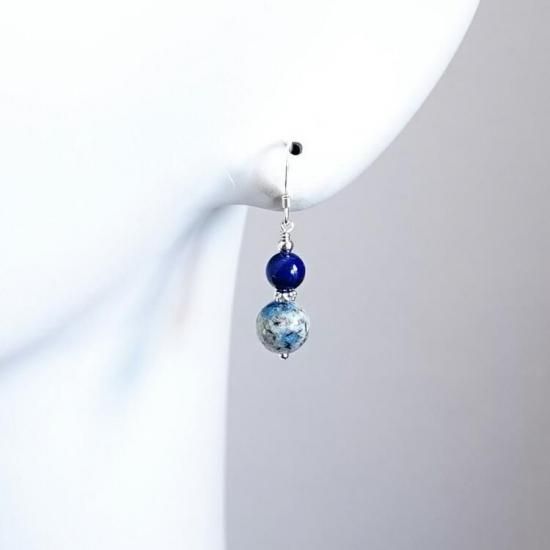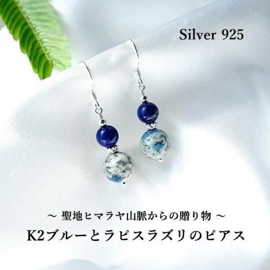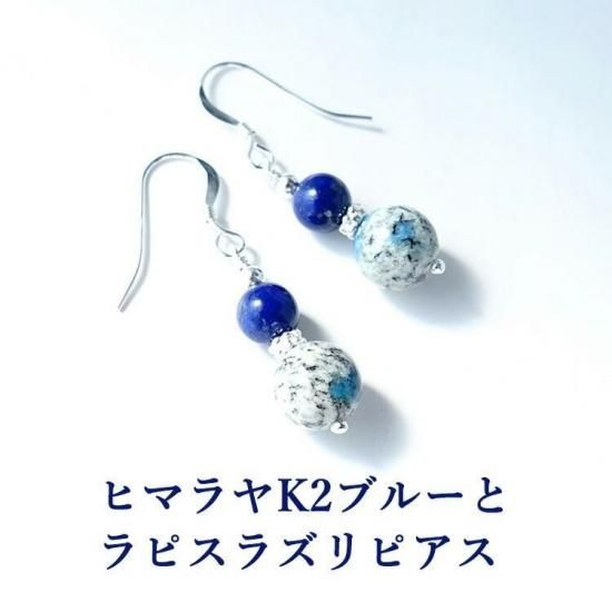〜 聖地ヒマラヤ山脈からの贈り物の石 K2ブルー と 幸運を招く ラピスラズリ のピアスです 〜