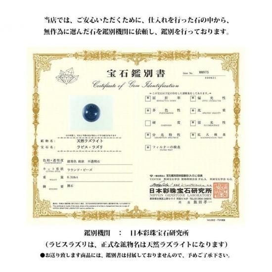 ◆ラピスラズリの球の大きさ : 約6ミリ