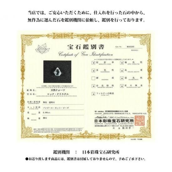※鑑別書はお付けしておりません。ご希望の場合は、別途料金にて承っておりますので、予めご了承ください。