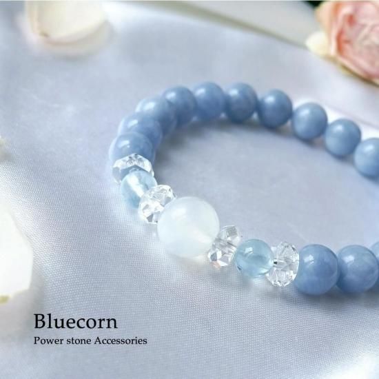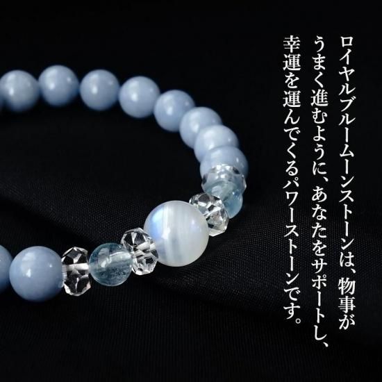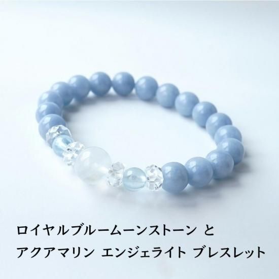 〜 希望・幸運の ロイヤルブルームーンストーン と 人生のお守り石 アクアマリン 天使のパワーストーン エンジェライト のブレスレットです 〜
