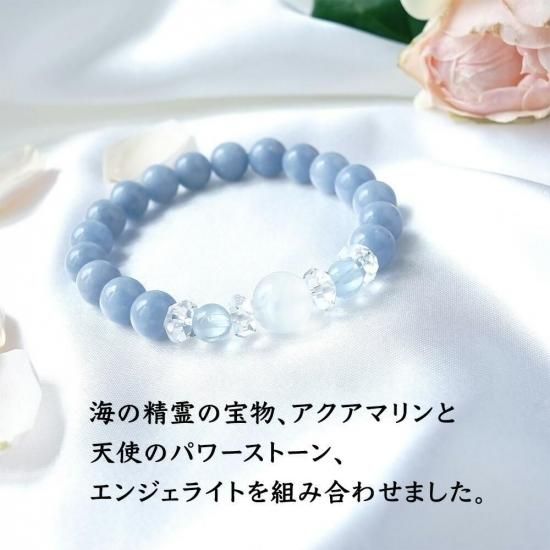 エンジェライトは、天から舞い降りてくる穏やかな天使のパワーストーンです。優しさと癒しをもたらし、天からの叡智をもたらすことによって、あなたにとって本当に大切なことに気が付くよう導いてくれます。