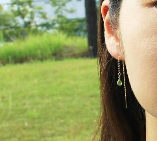 爽やかなグリーン色!ペリドットのアメリカンピアスです!〜