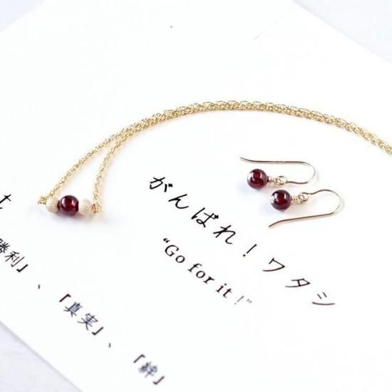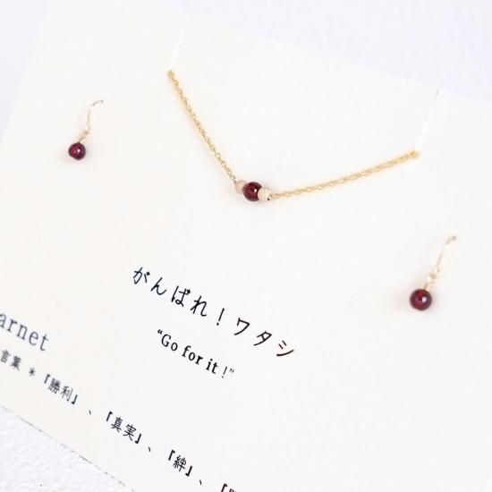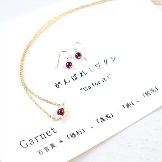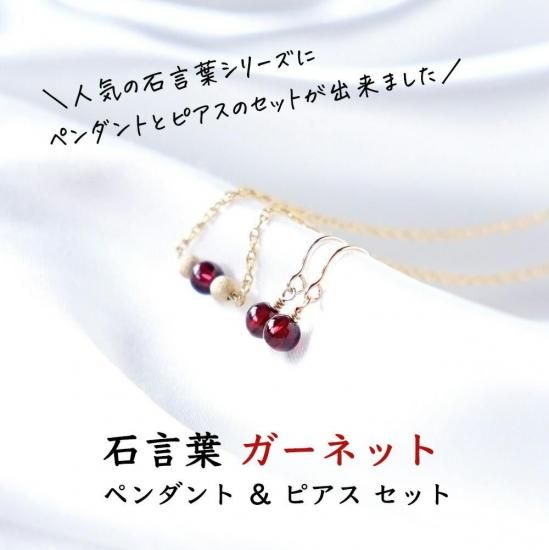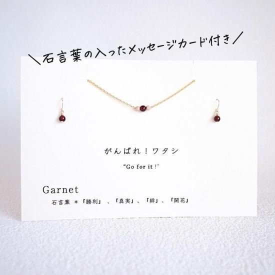 〜 ガーネットの石言葉は、「勝利」「真実」「絆」「開花」 メッセージの入ったカード付き! ガーネット石言葉 ペンダント & ピアス セット 〜